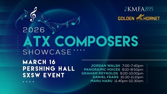 KMFA and Golden Hornet invite you to the official ATX Composer’s Showcase at South By Southwest. Join KMFA's, Emilio Alvarez (Host of Breakfast Blend), on Monday, March 16th at Pershing Hall for a showcase celebrating some of Austin's most exciting new composers and new music groups. Co-hosted and with a performance by Graham Reynolds, music begins at 7 PM.